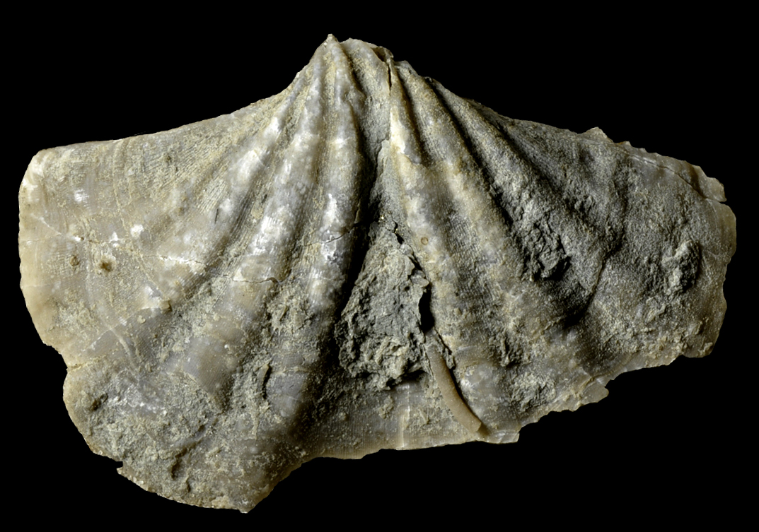 Top image also shows an example of cornulites -- a calcified filter-feeding worm that attached itself to large brachiopods.